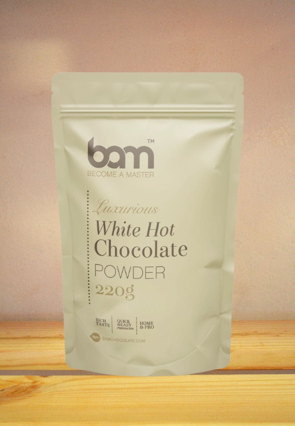 BAM bela vroča čokolada je popolna izbira za vse ljubitelje bele čokolade in tiste, ki obožujejo tradicionalne, tople sladke napitke. Izdelana je iz skrbno izbranih kakavovih zrn, ki ustvarijo osupljivo kremno teksturo in zapeljiv, nežen okus bele čokolade.
