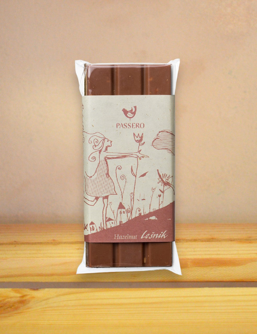 Spoznaj Passero mlečno čokoladico z lešniki – popolno ravnovesje med žametno mehkobo mlečne čokolade in bogato, praženo noto izbranih lešnikov. To je brezčasna kombinacija, ki nikoli ne razočara in vedno razvaja.