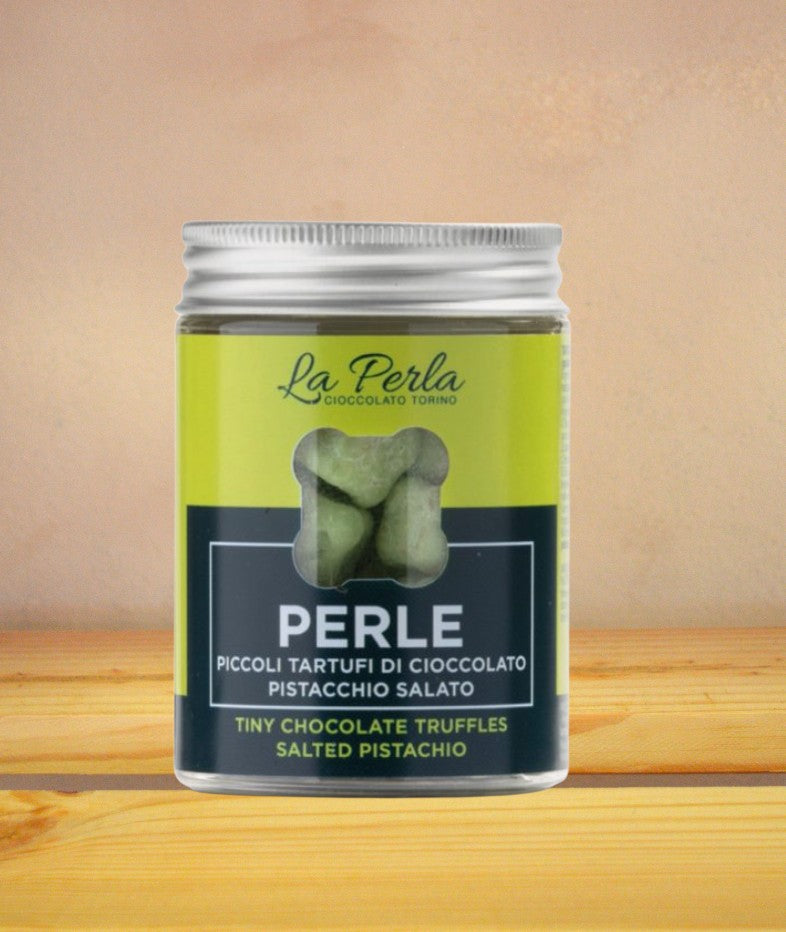 La Perla – Slane pistacijeve Perle | Mini beli čokoladni tartufi | 50 g