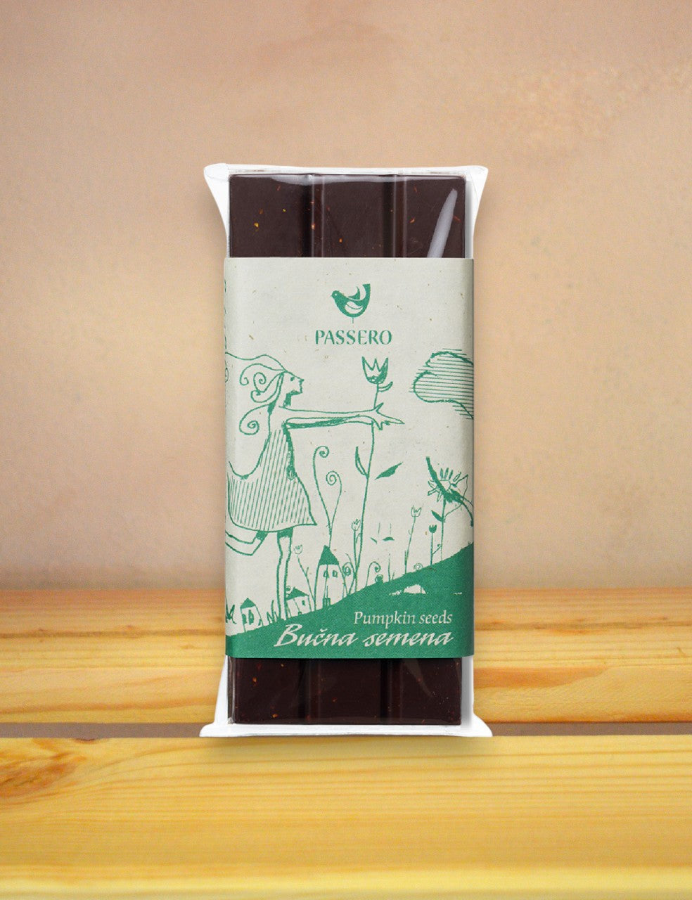 Spoznaj Passero temno čokoladico z bučnimi semeni, ki združuje intenzivno aromo temne čokolade s prijetno hrustljavostjo in naravno energijo bučnih semen. To je popolna izbira za ljubitelje temne čokolade, ki iščejo bogat okus in zdrav, hranljiv dodatek.